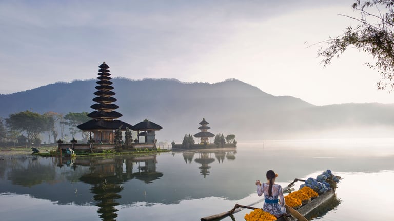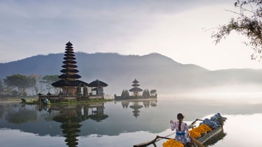 Discover one of Bali’s most iconic temples, beautifully floating on a serene lake surrounded by cool mountain air and misty views.